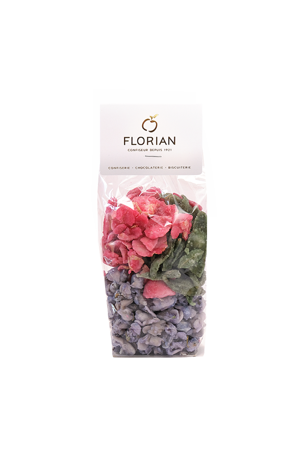 La Confiserie Florian vous invite à découvrir un monde de saveurs sucrées et parfumées avec son assortiment de fleurs cristallisées. Ce sachet est parfait pour découvrir les saveurs subtiles de la rose, de la violette et de la verveine.