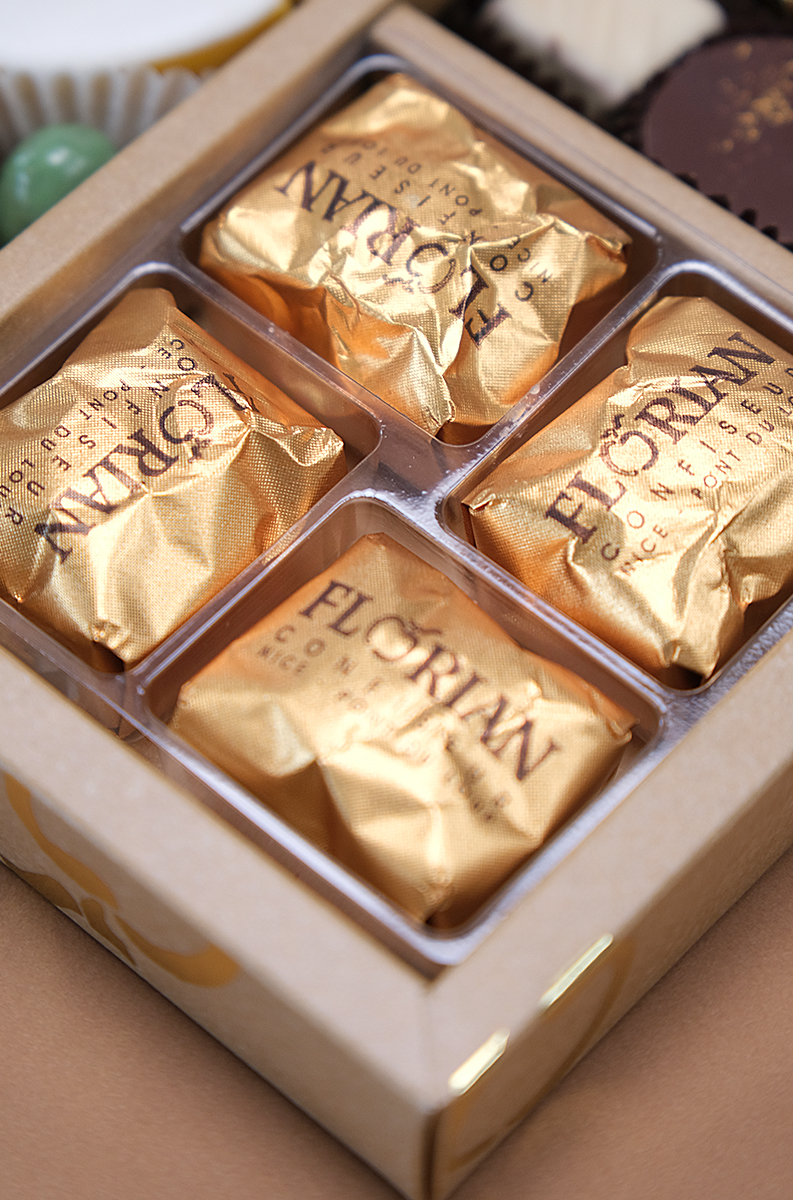 - un assortiment de nos chocolats assortis, fabriqué dans notre chocolaterie sur le port de Nice