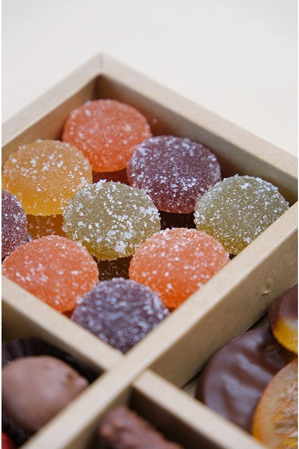 - Pâtes de fruits artisanales : Un arc-en-ciel de saveurs intenses avec mandarine, cassis, framboise, prune, abricot et citron.
